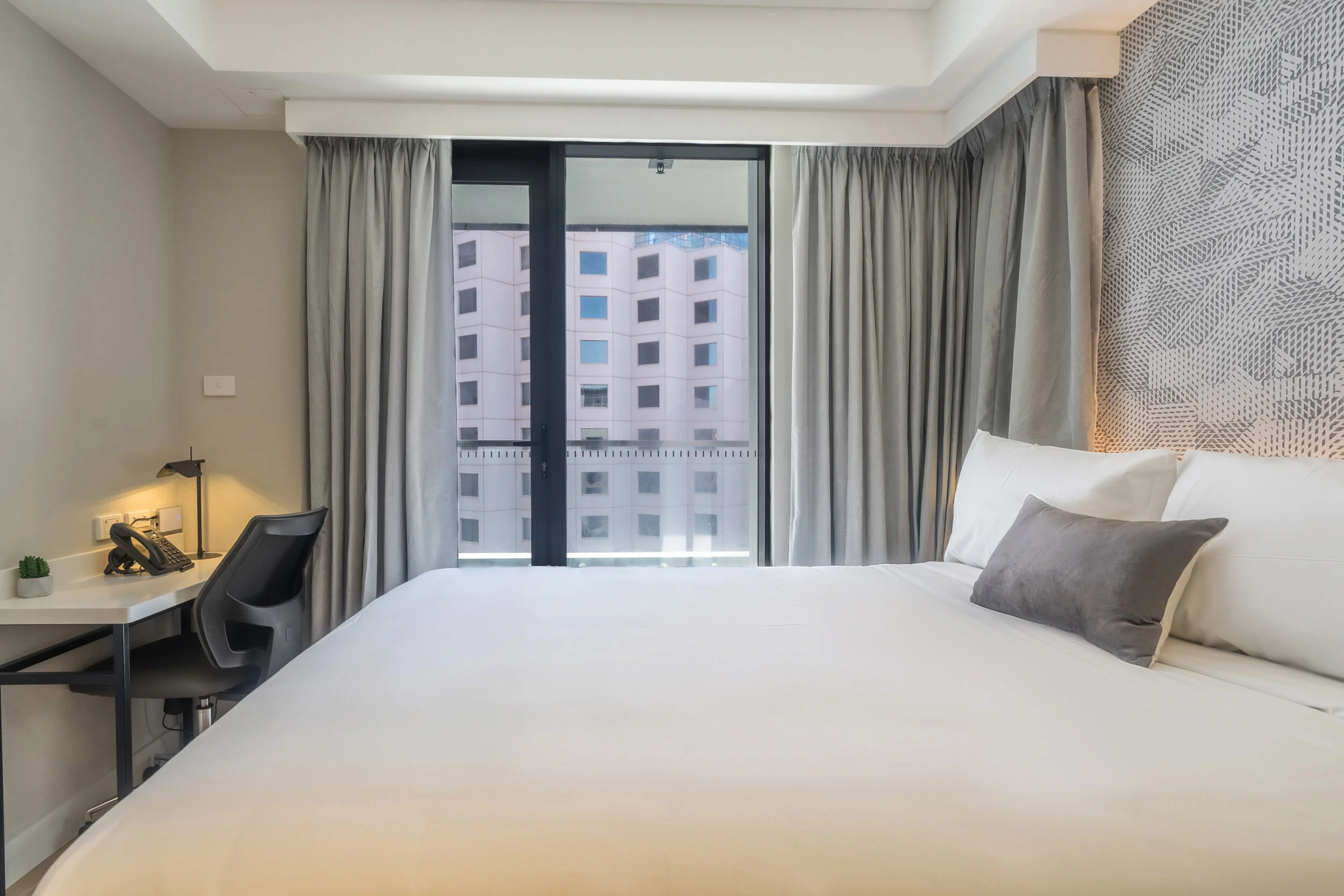These compact queen-bedded rooms fitted with contemporary furnishing have just everything you need for a few nights’ stay in the city!