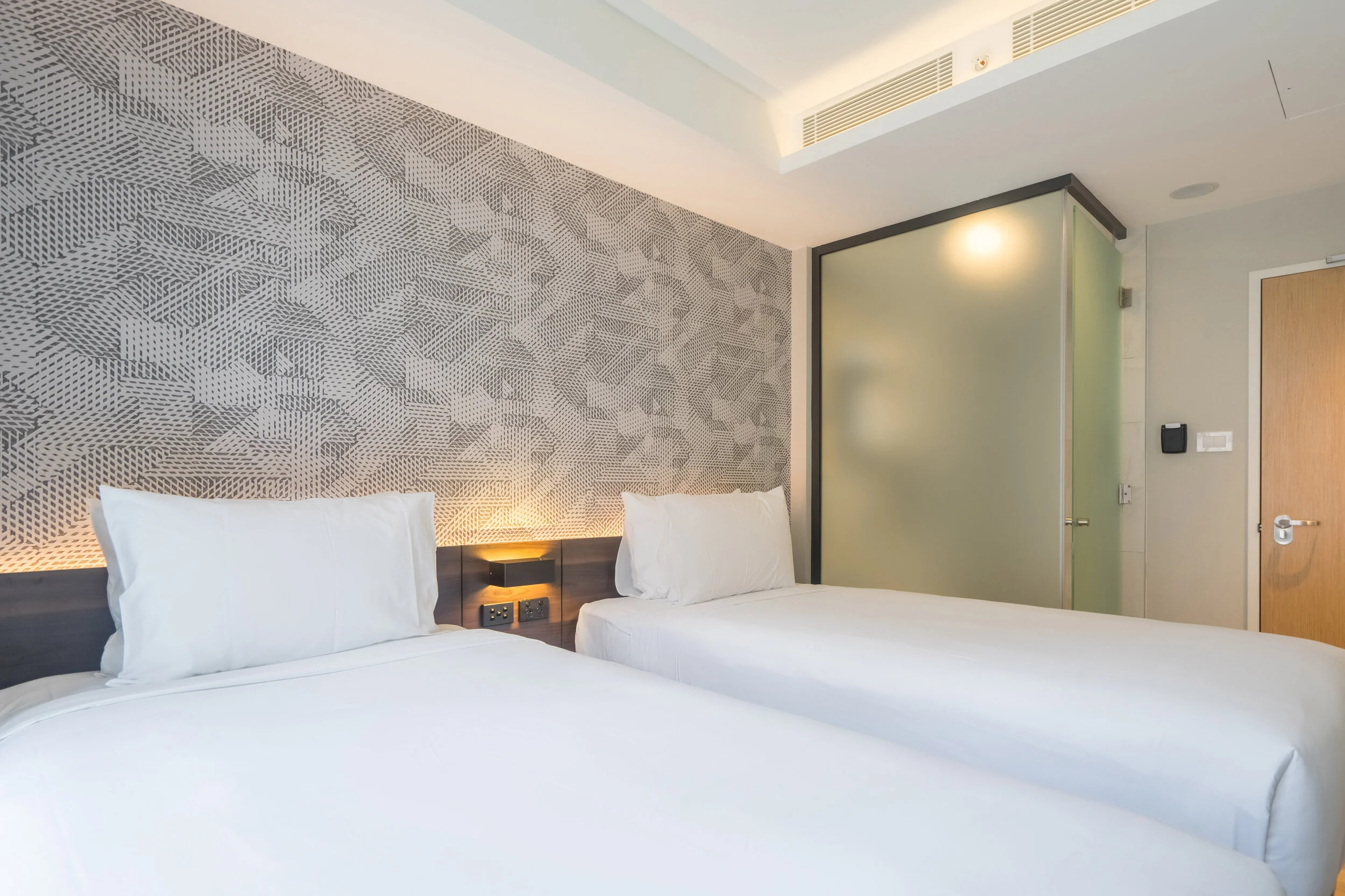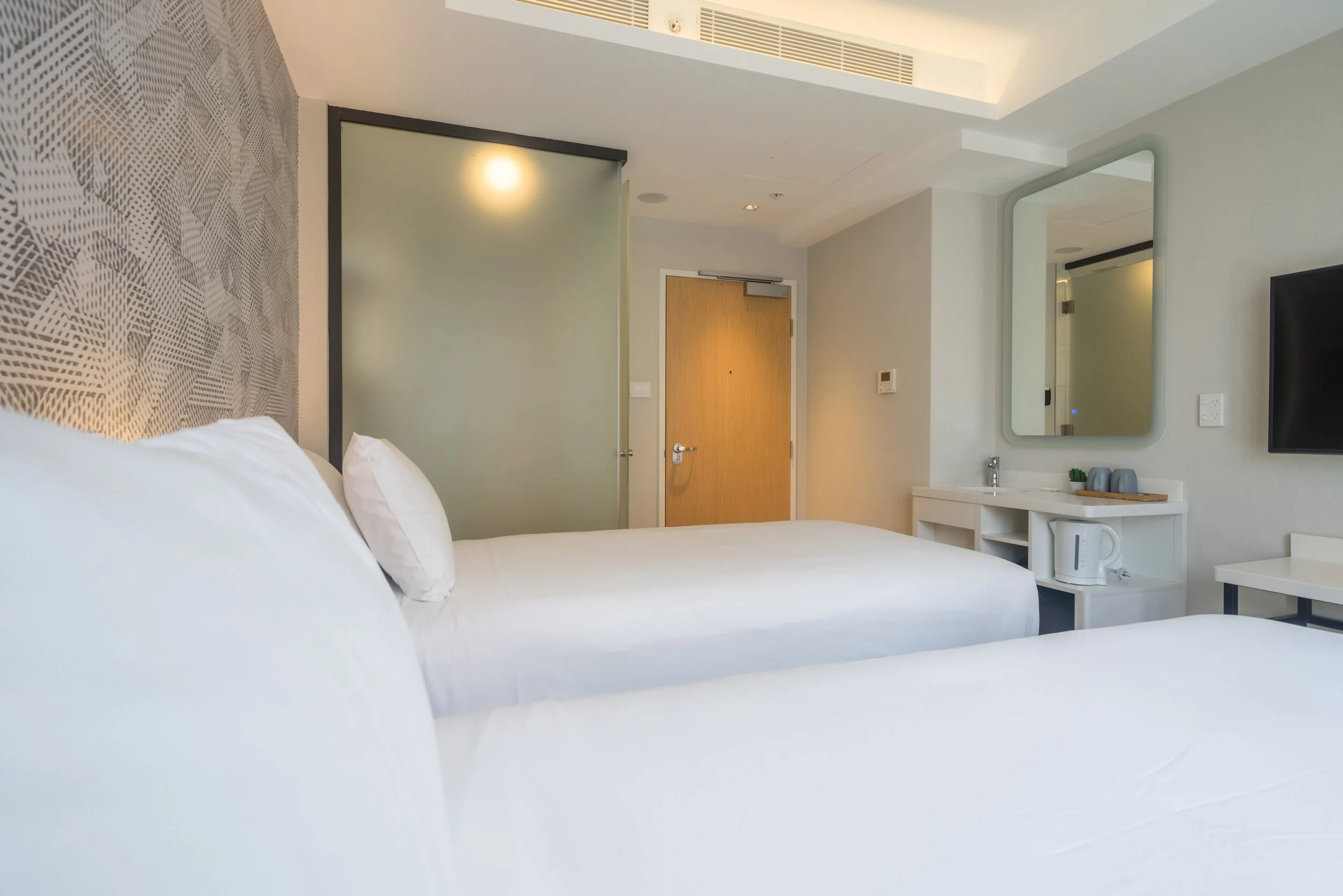Fitted with two comfy super single beds, cozy up with your buddy in this room for two!